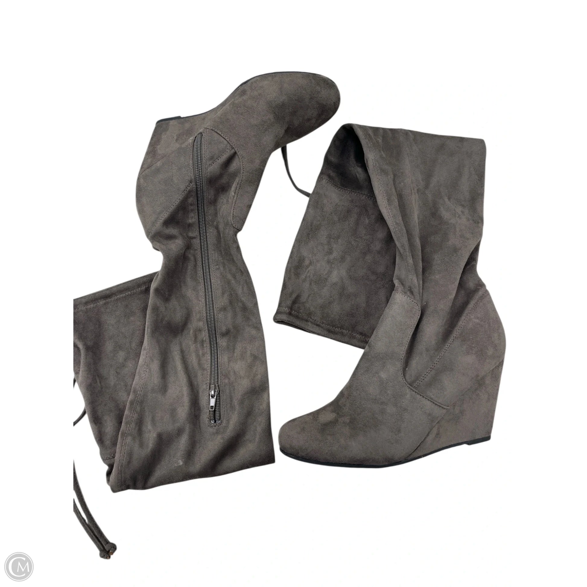 Boots Knee Heels By Francesca's In Grey, Size: 9