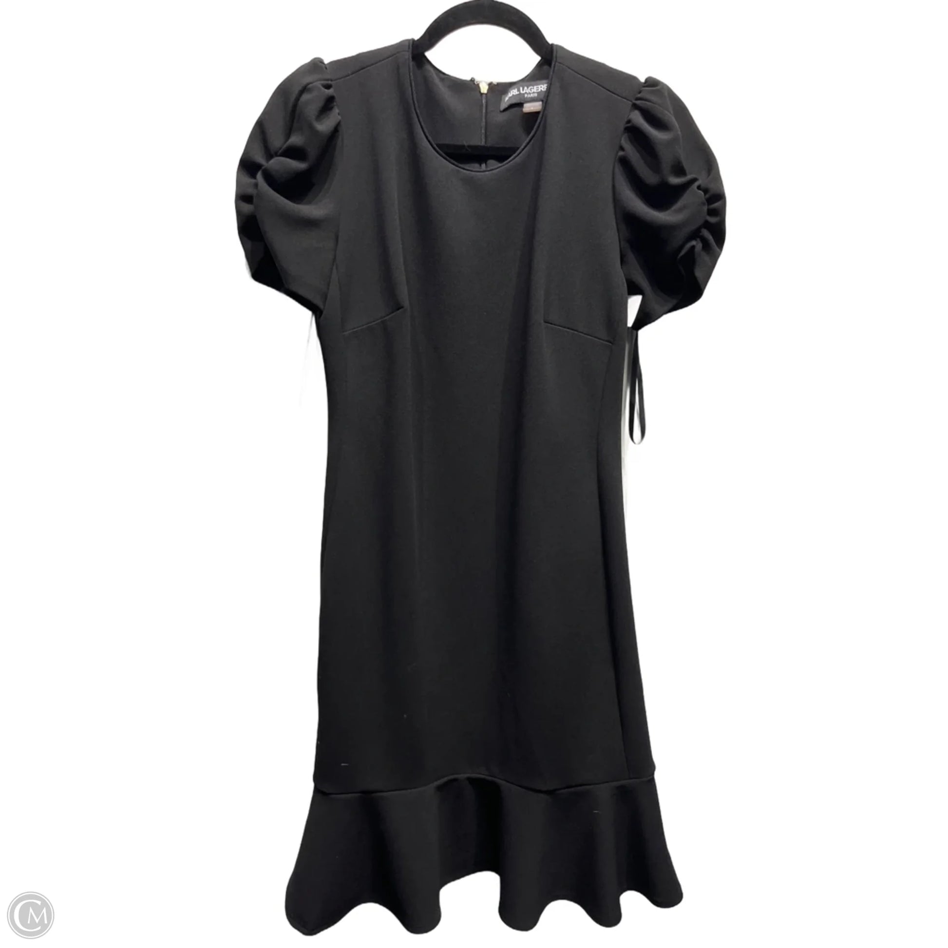 Step out in style with this sleek black dress by Karl Lagerfeld. Perfect for any occasion, size 4 available.