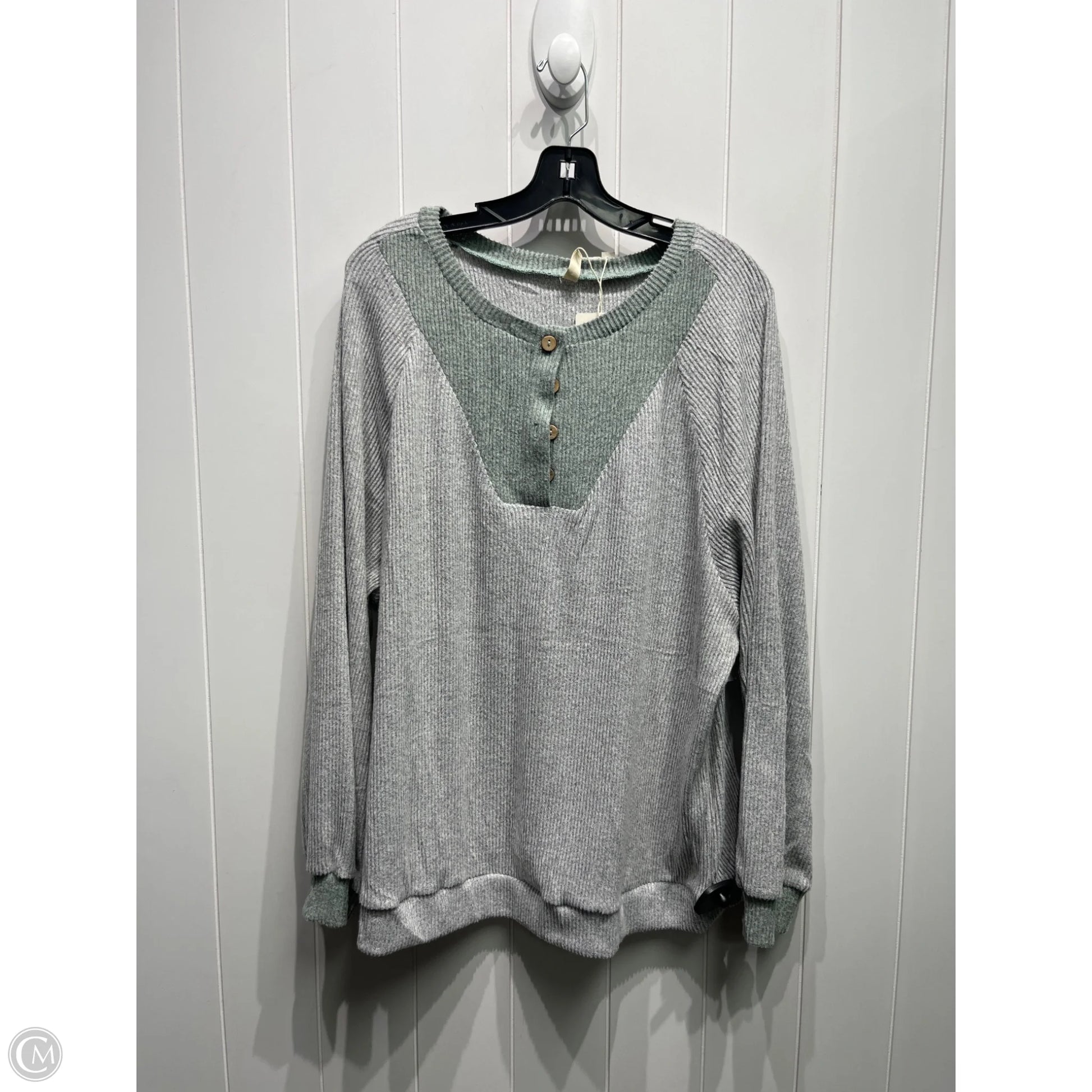 Sweatshirt Crewneck By EVALESS In Green & Grey, Size: 2x