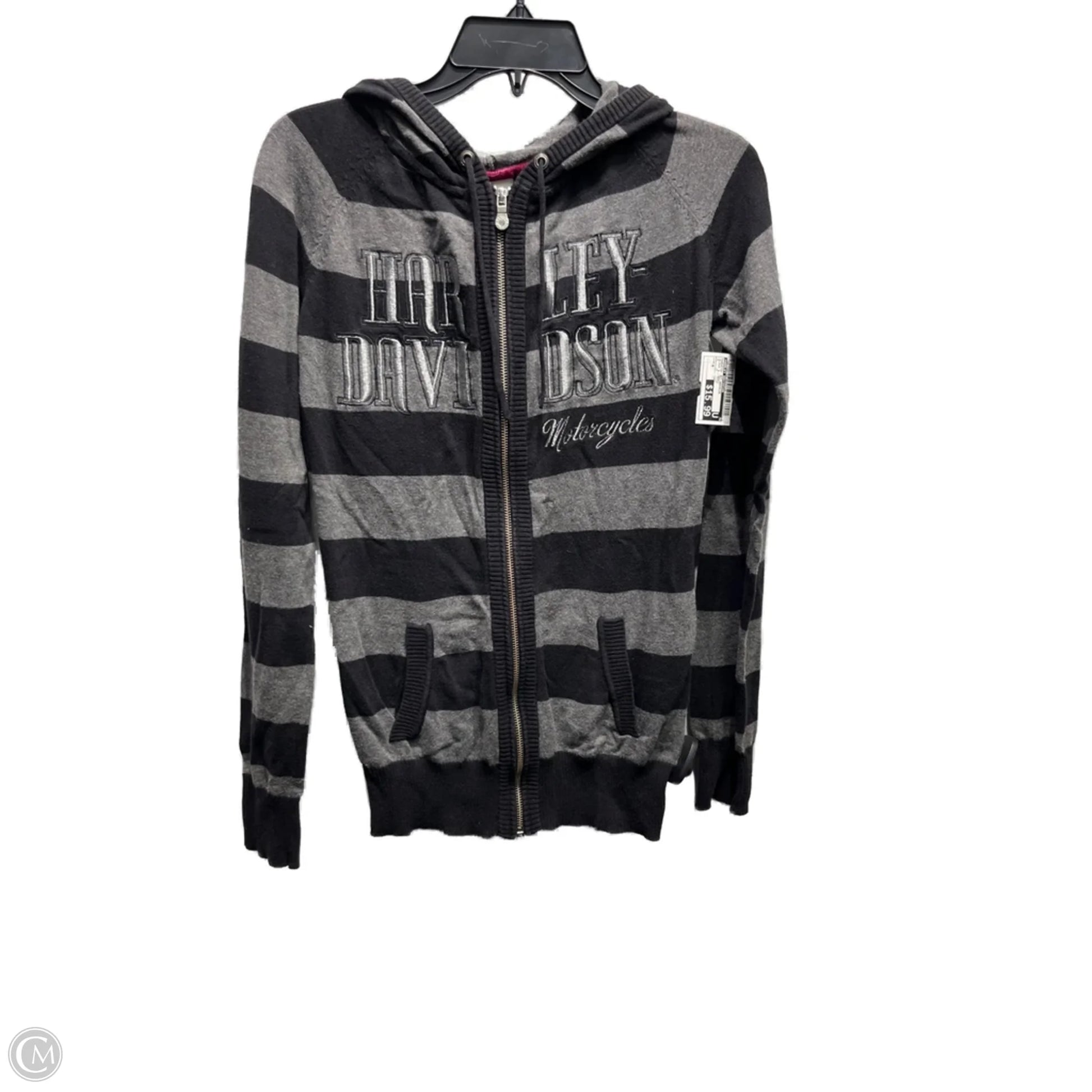 Sweatshirt Hoodie By Harley Davidson In Black & Grey, Size: M