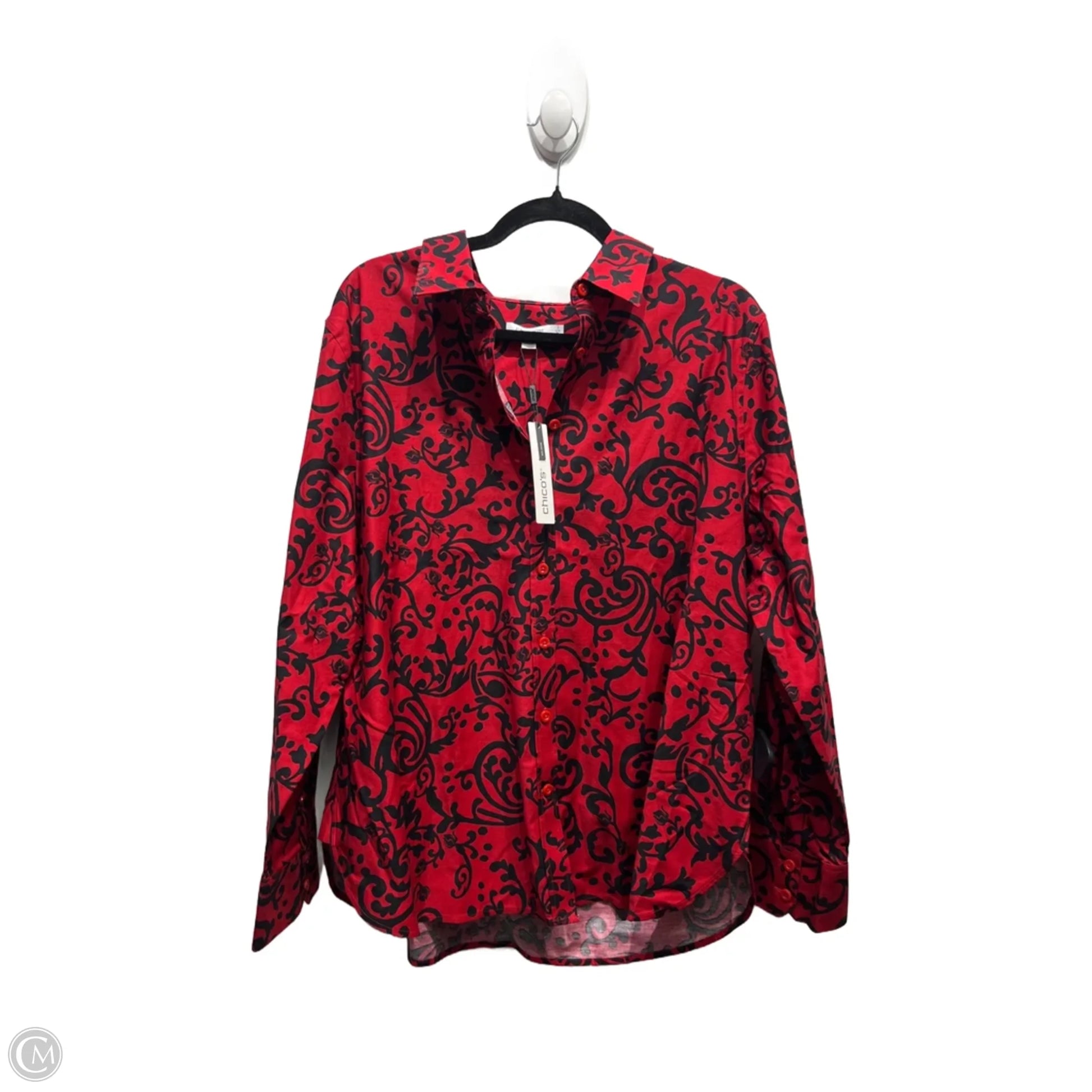 Top Long Sleeve By Chicos In Black & Red, Size: Xl