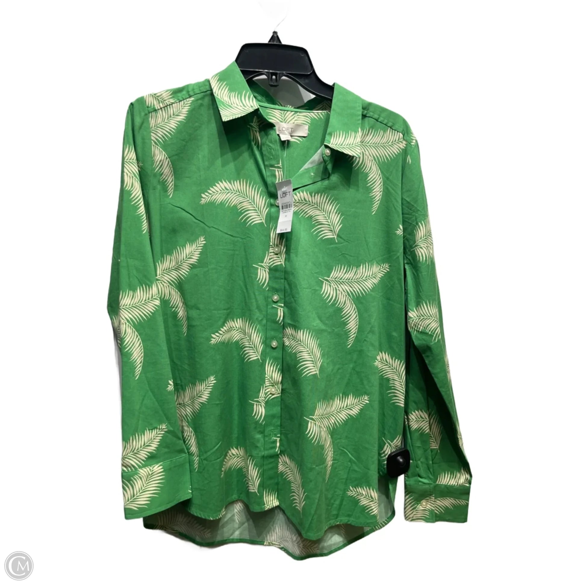 Top Long Sleeve By Loft In Cream & Green, Size: M