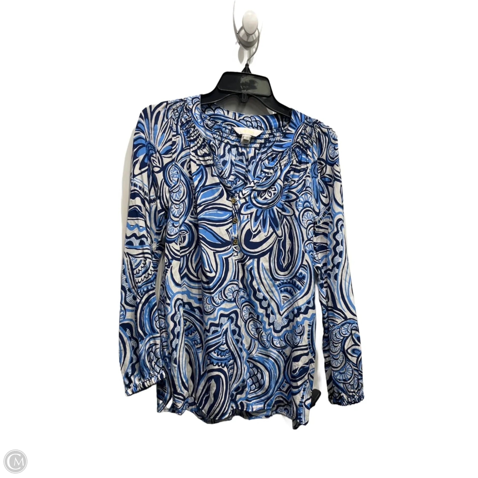 Top Long Sleeve Designer By Lilly Pulitzer In Blue & White, Size: S